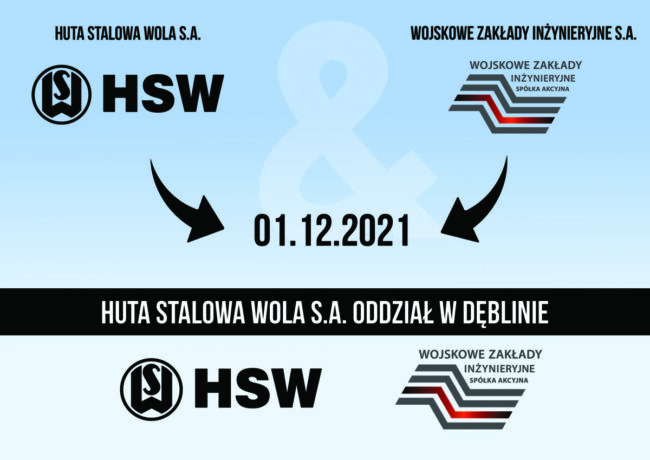 Wojskowe Zakłady Inżynieryjne S.A. od 1 grudnia 2021 r. stają się Oddziałem Huty Stalowa Wola S.A.
