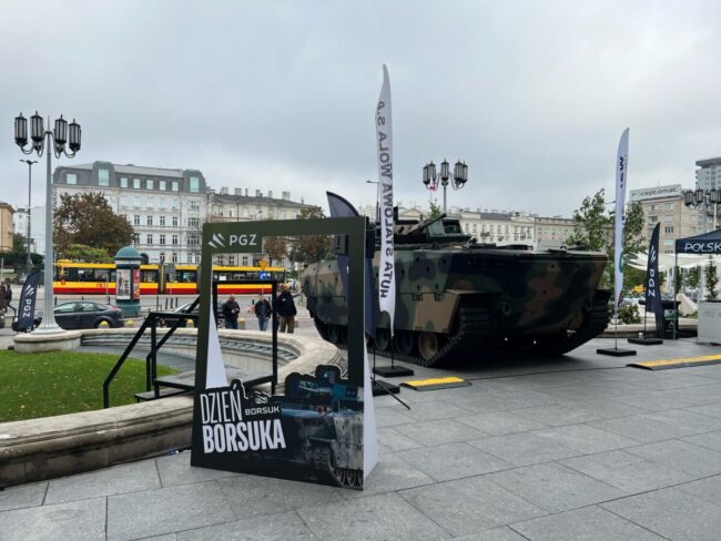 W dniu 6 października 2023r. Huta Stalowa Wola S.A. wzięła udział w organizowanym przez Polską Grupę Zbrojeniową DNIU BORSUKA pod hasłem Borsuk: Siła Polskiej Innowacji. W centrum Warszawy obok „palmy” warszawiacy i goście mogli z bliska obejrzeć Nowy Bojowy Pływający…