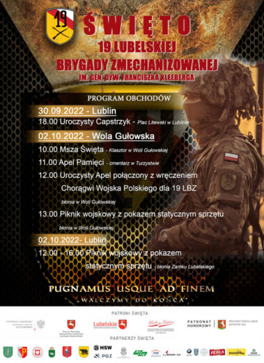 Huta Stalowa Wola wzięła udział w obchodach święta 19 Lubelskiej Brygady Zmechanizowanej im. gen. dyw. Franciszka Kleeberga, które odbyły się w dniach 30 września i 2 października 2022 r. w Lublinie oraz Woli Gułowskiej (pow. łukowski). Defilada wojskowa, prezentacja pojazdów bojowych i pokazy kawaleryjskie odbyły się w Woli Gułowskiej w ramach święta 19. LBZ. Piknik wojskowy odbywa się w ramach 83. rocznicy ostatniej bitwy Kampanii Wrześniowej z 1939 roku pod Kockiem. Podczas obchodów dowódcy brygady uroczyście wręczono chorągiew Wojska Polskiego. W strukturach 19. Lubelskiej Brygady Zmechanizowanej są między innymi bataliony w Chełmie i Zamościu, jest kontynuatorem tradycji Samodzielnej Grupy Operacyjnej Polesie dowodzonej przez generała dywizji Franciszka Kleeberga, która zwyciężyła w bitwie pod Kockiem – ostatniej batalii kampanii wrześniowej. Piknik obejmował ekspozycję nowoczesnego sprzętu wojskowego 18 Dywizji Zmechanizowanej, w której skład chodzi 19 Brygada.