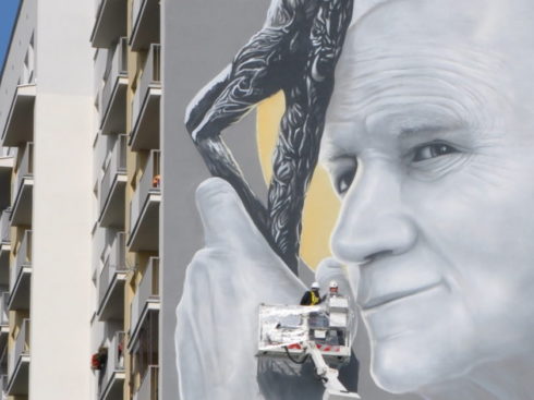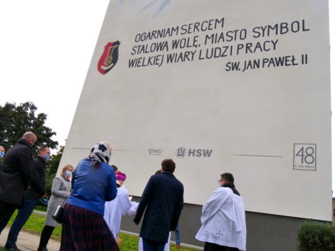 Mural ukończony 16 października 2020 r. w dzień rocznicy wyboru Karola Wojtyły na Stolicę Piotrową został wykonany na 30 metrowej ścianie wieżowca przy Alejach Jana Pawła II nr 48. Pomysł upamiętnienia Wielkiego Polaka i złożenia mu hołdu w takiej formie zyskał aprobatę mieszkańców Stalowej Woli. Projekt muralu został wybrany w ogólnopolskim konkursie. Autorem pracy jest Piotr Topczyłko, twórca sztuki ulicznej i autor wielu murali w całej Polsce. Malowidło przedstawia popiersie Jana Pawła II oraz przytacza słowa wypowiedziane przez Ojca Świętego podczas wizyty w Sandomierzu w 1999r.: ”Ogarniam sercem Stalową Wolę, miasto symbol wielkiej wiary ludzi pracy”.