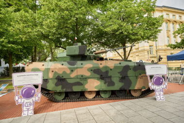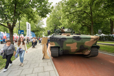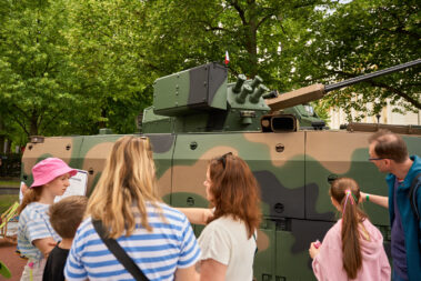 Centralnym punktem ekspozycji GK PGZ był Bojowy Wóz Piechoty BORSUK oraz drugi wóz – ROSOMAK. Dzieci i dorośli mieli okazję podejść do pojazdów, zrobić sobie pamiątkowe zdjęcia, a także posłuchać o tym, jak nowoczesne technologie wspierają bezpieczeństwo Polski.