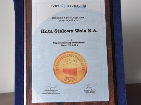 On July 26th, 2009, Huta Stalowa Wola received the title of “Responsible Employer – Leader of Human Resources 2019” awarded for the high level of implemented employment and employee policy and its integration with the company’s business goals. The award was received by the Member of the Board,