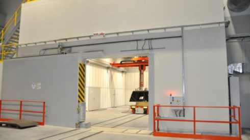 - X-ray chamber enabling the assessment of large-size welded structures and metallurgical products (forgings, castings, etc.) with the possibility of x-rays of steel products with dimensions max. 4.4 x 10 x 2.5 [m], weight up to 15 [T] and cross sections up to 100 [mm]. Radiographic tests are carried out using X-ray tubes and isotope flaw detectors.